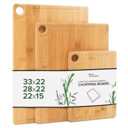 Premium Extra-Thick Wooden Chopping Boards - 3 Piece Bamboo Chopping Board Set - 33x22cm / 28x22cm / 22x15cm - Ideal for Carving Meat, Cutting Vegetables, Cheeses and Bread - by LARHN