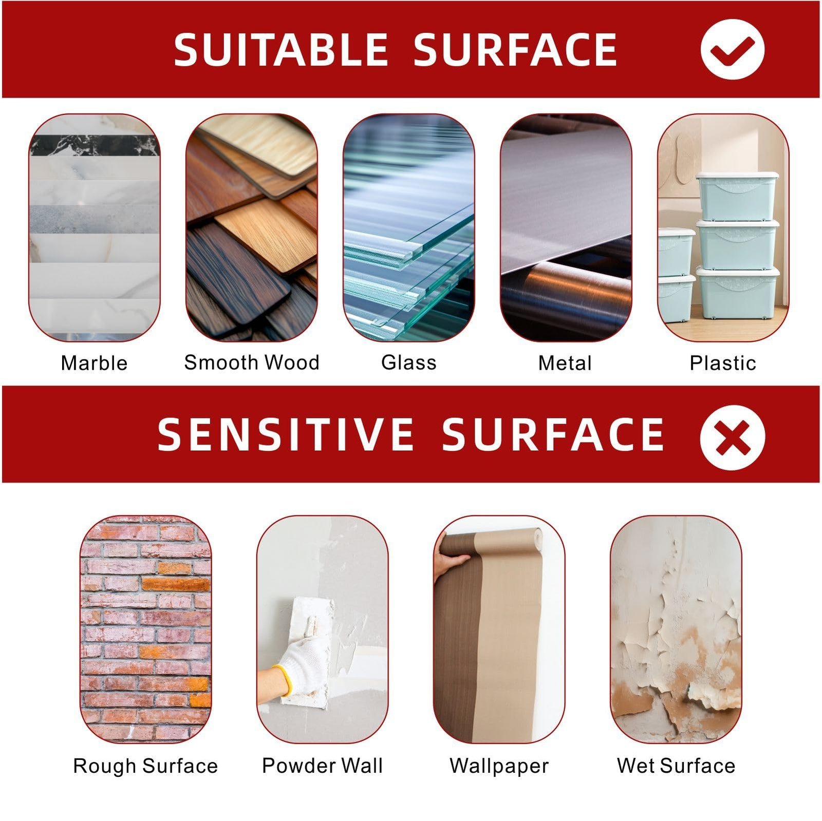 - 【INSTALLATION AND REMOVABLE】 At room temperature, approximately 50% of the ultimate strength will be achieved after 20 minutes, 90% after 24 hours and 100% after 72 hours. Spraying alcohol on the tape then it is easy to peel off.