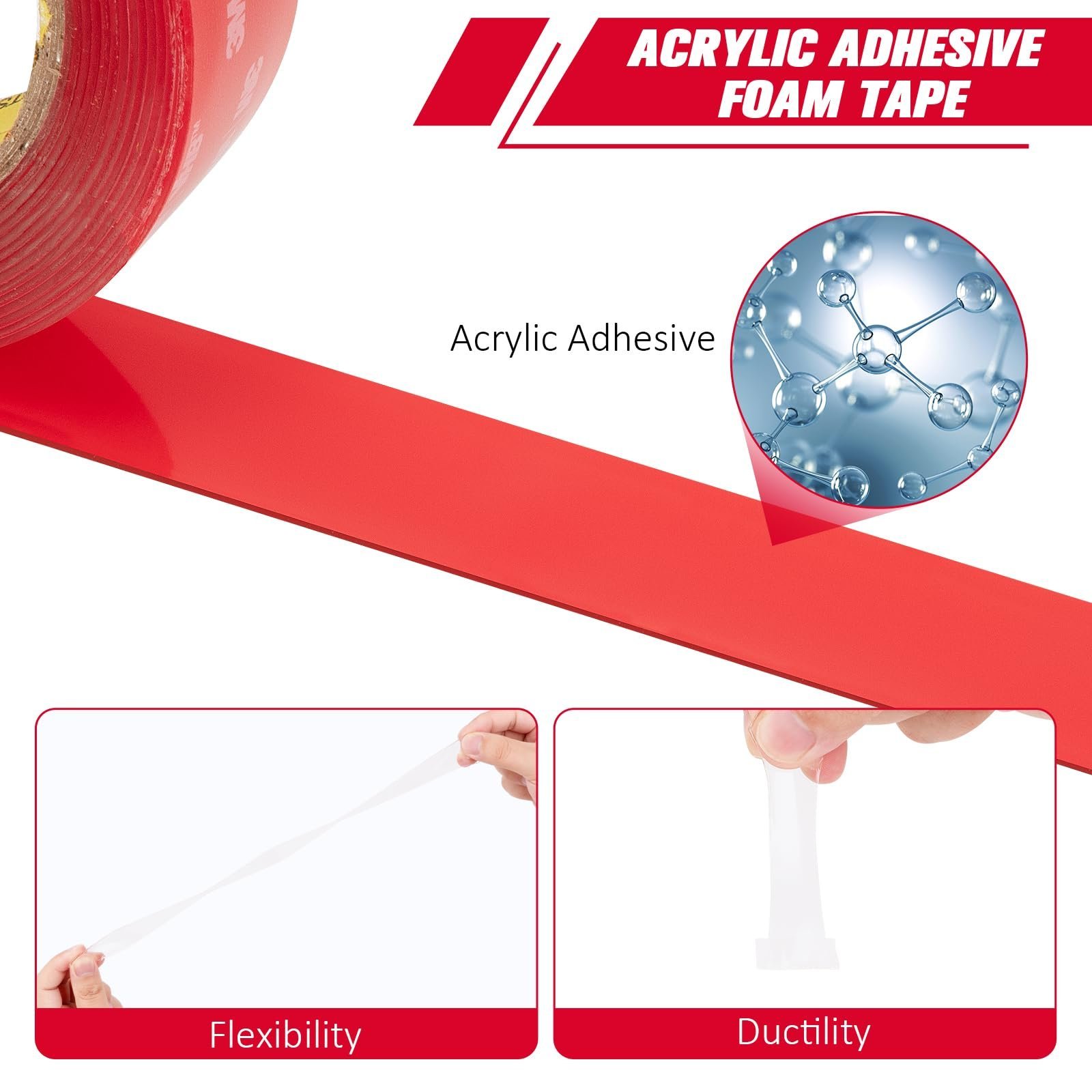 - 【HIGH QUALITY】 The 4905 tape can replace rivets, welds and screws. The fast and easy to use permanent bonding method provides high strength and long-term durability. It consists of a durable acrylic adhesive with viscoelastic properties, This provides an extraordinarily strong double sided foam tape and offers design flexibility with its viscoelasticity and powerful ability to bond a variety of surfaces. (0.5mm thickness,90°peel adhesion 15Lbs/inch, normal tensile adhesion 160 Lbs/in²)