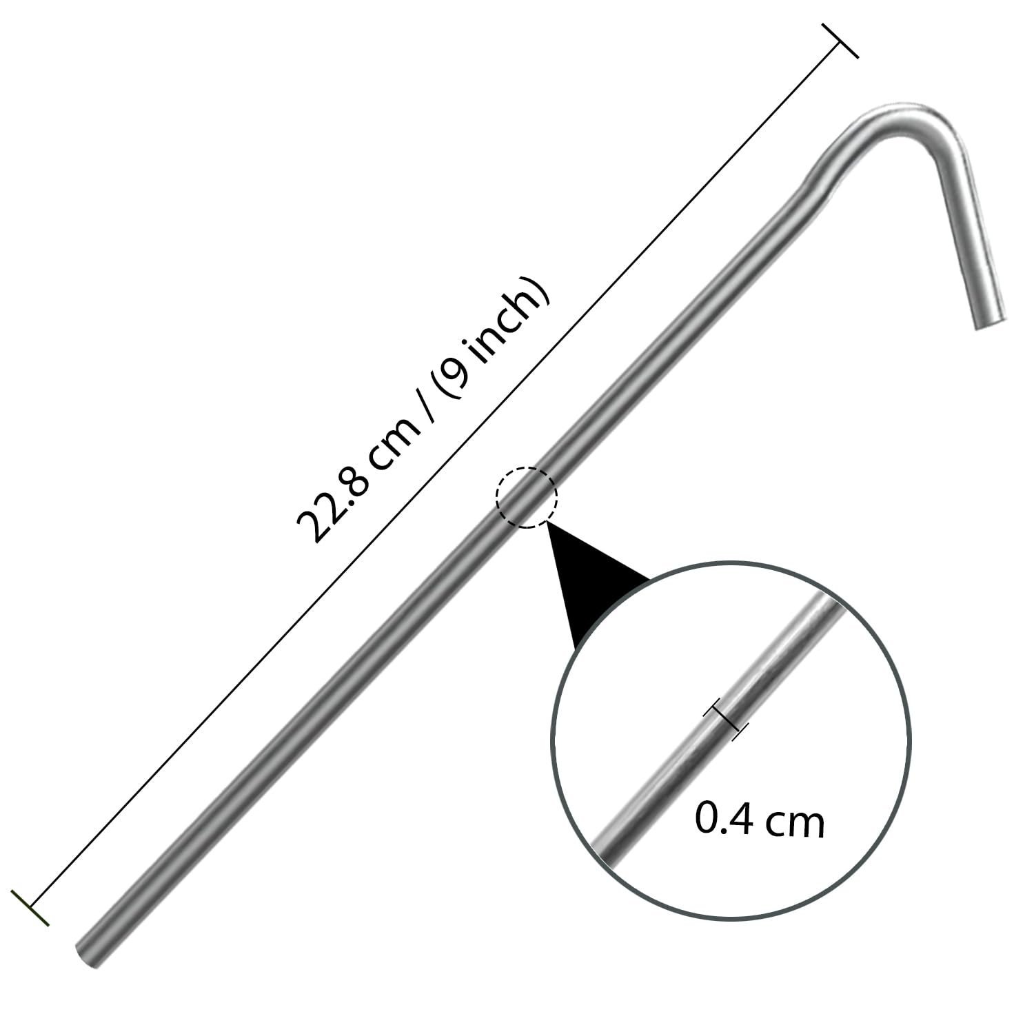 ANSIO® Tent Pegs Pack of 20 Galvanised Metal Pegs 4mm x 9 inch, Heavy Duty Camping Ground Pegs, Ideal for Camping,Hiking,Traveling,Beach and Outdoor