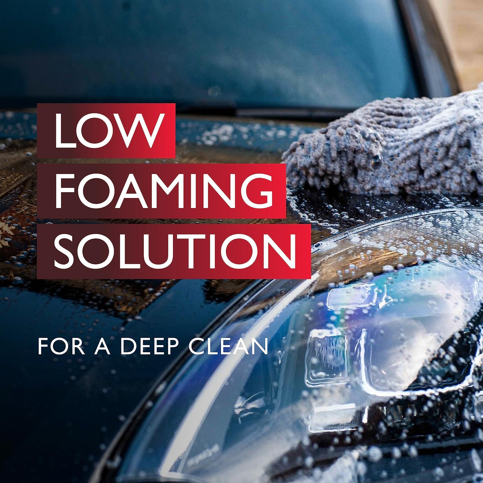 - A low foam deep cleaning car wash shampoo that leaves a glossy, water-repelling wax-like protection in one easy step
