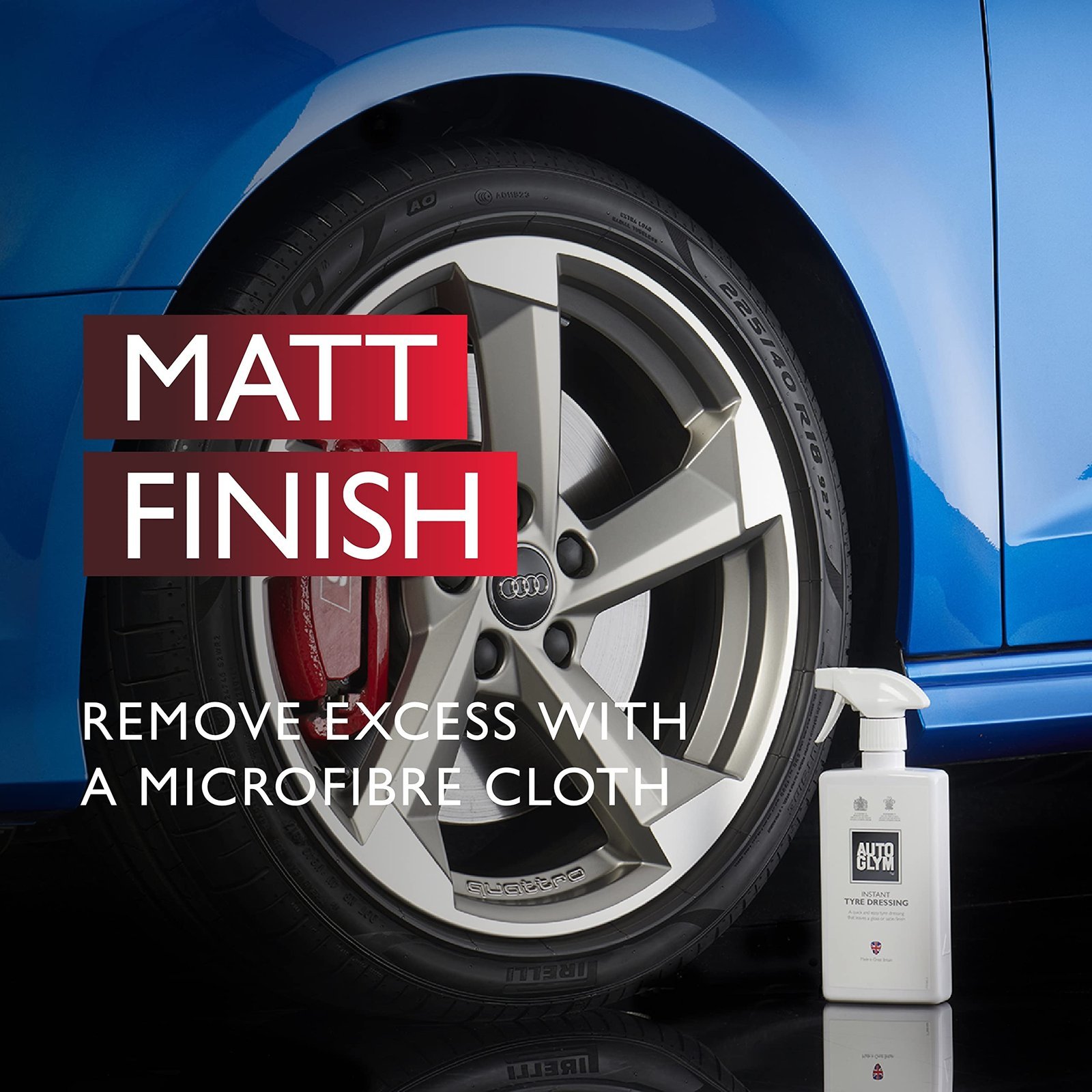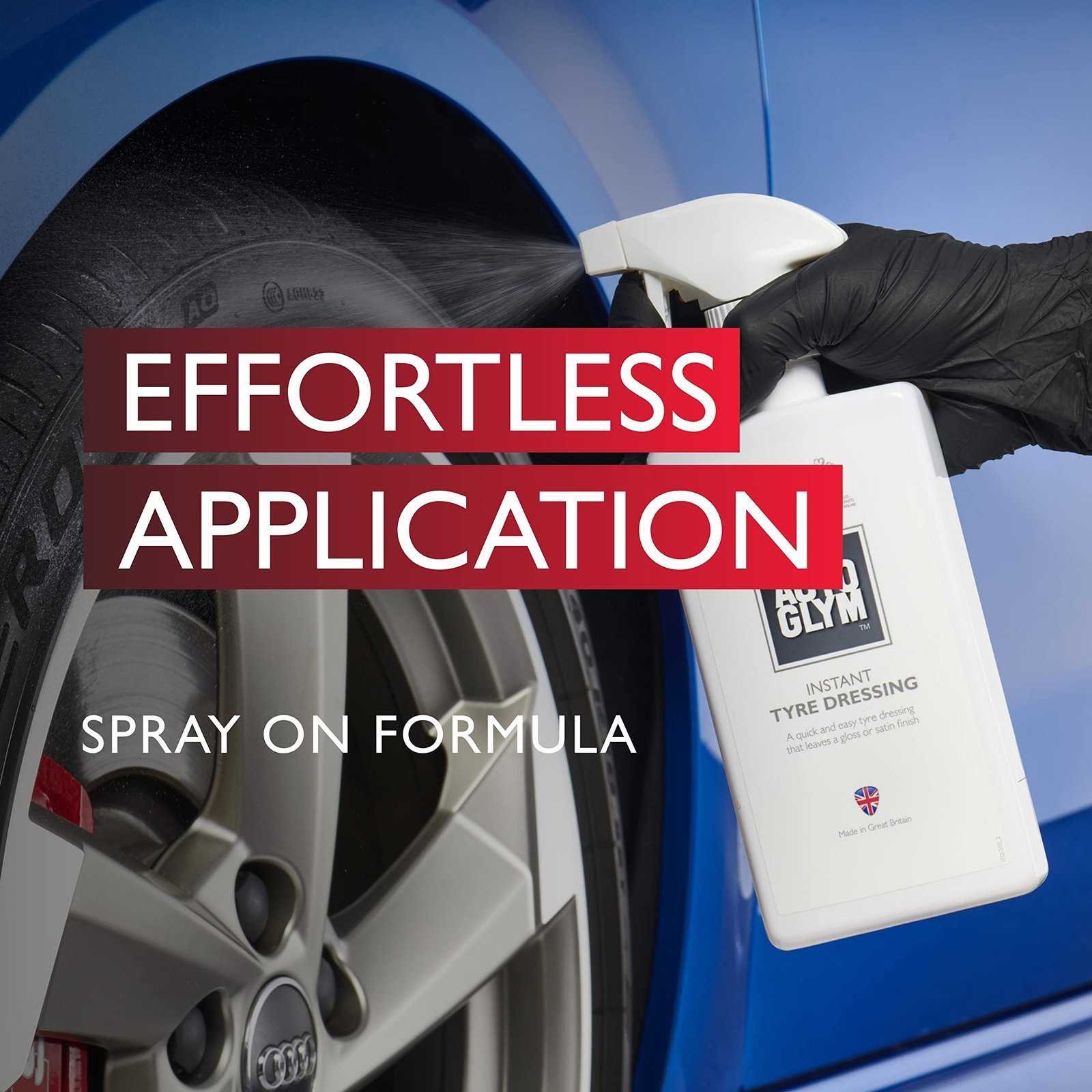 - Spray-on tyre care solution can leave you with a gloss or satin finish, whichever you prefer
