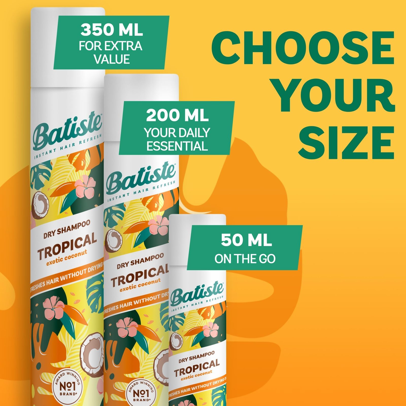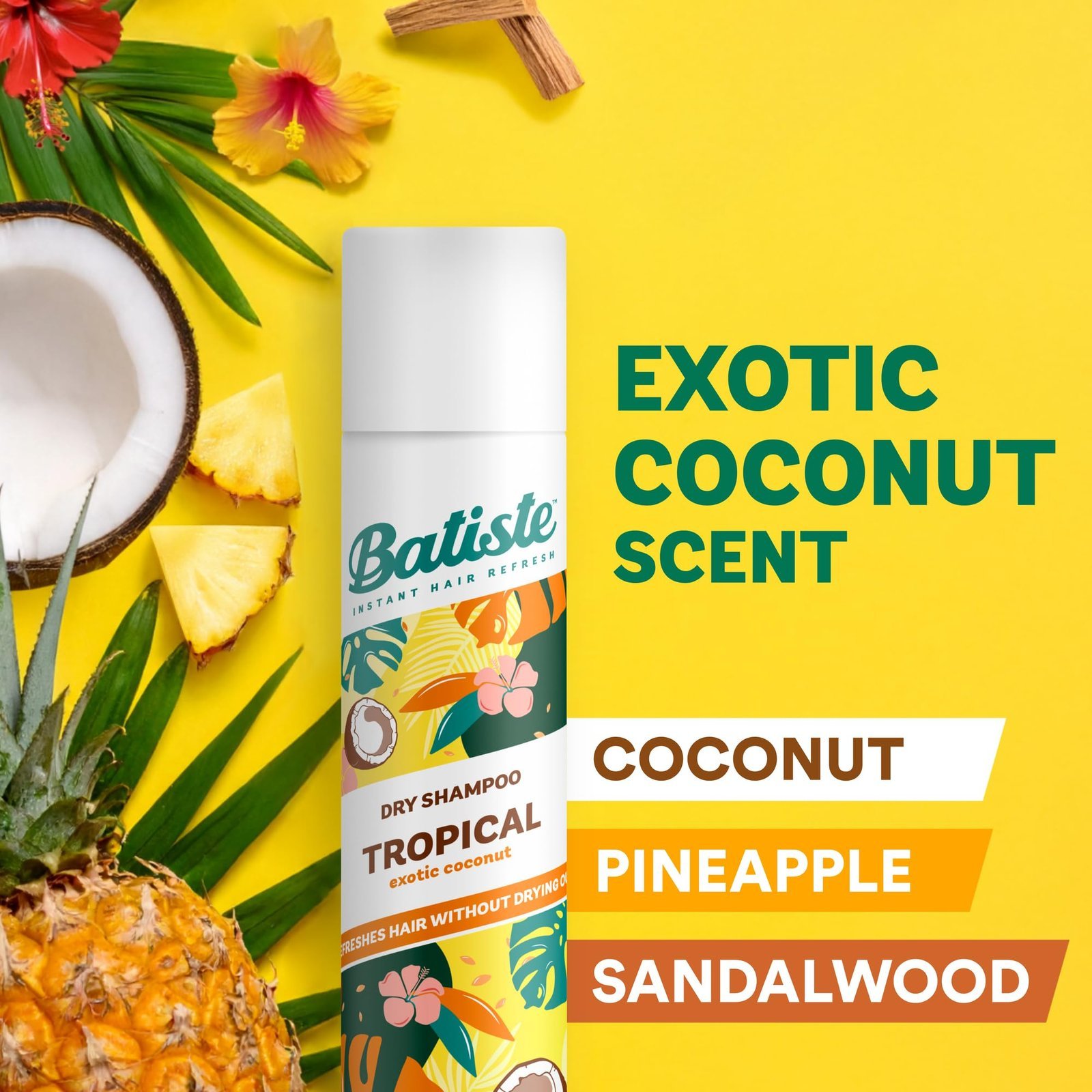 Batiste Dry Shampoo in Tropical 350ml, Coconut & Floral Fragrance, No Rinse Spray to Refresh Hair in Between Washes