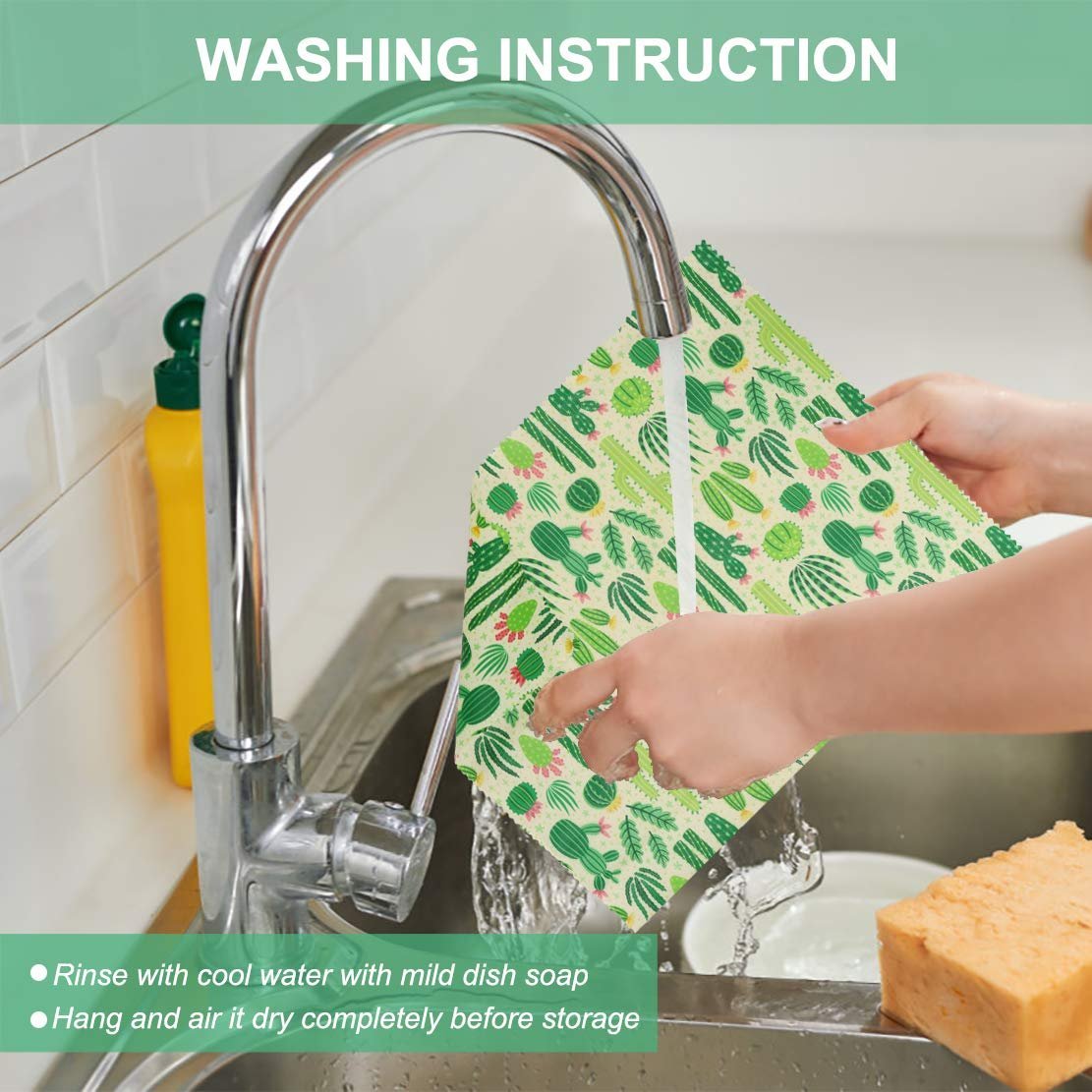 - WASHABLE AND REUSABLE – Use the warmth of your hands to soften the wrap and form over a bowl, container, or piece of food. As the wrap cools, it creates a seal and stores food naturally. Hand wash with cold water (avoid hot water), and air dry only (no wringing). Avoid microwaves and hot temperatures.