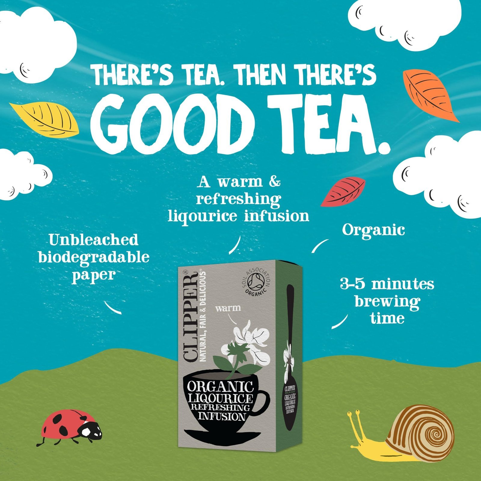 Clipper Organic Liquorice Root Tea is a full, distinctive and highly refreshing infusion with a naturally sweet taste. Naturally caffeine-free, this bulk pack of 120 licorice teabags (6 boxes of 20) is part of our Everyday Infusions range of fruit teas, herbal teas and flavoured tea bags. The large case is great for catering, weddings, corporate events or for taking on the go. This organic tea blend contains no caffeine and is ideal for morning or after dinner. Our teabags are proudly unbleached, plant-based and biodegradable. Clipper speciality teas are made with pure natural ingredients. We use only the highest-quality sources and add nothing artificial. No wonder they taste so good. These fine, award-winning Clipper tea bags make the perfect teabag gifts, herbal tea gift for a loved one, or to treat yourself to a delicious cuppa every day or when you travel. Ingredients: 100% Organically Grown Liquorice Root. At Clipper, we believe that every cup of tea counts. Every cup you drink means we’re able to keep doing the good stuff to support people and the planet. That’s why all our teas are made with eco-conscious, pure ingredients. Discover our Fairtrade teas and traditional blends, and enjoy what goes into every Clipper cup.