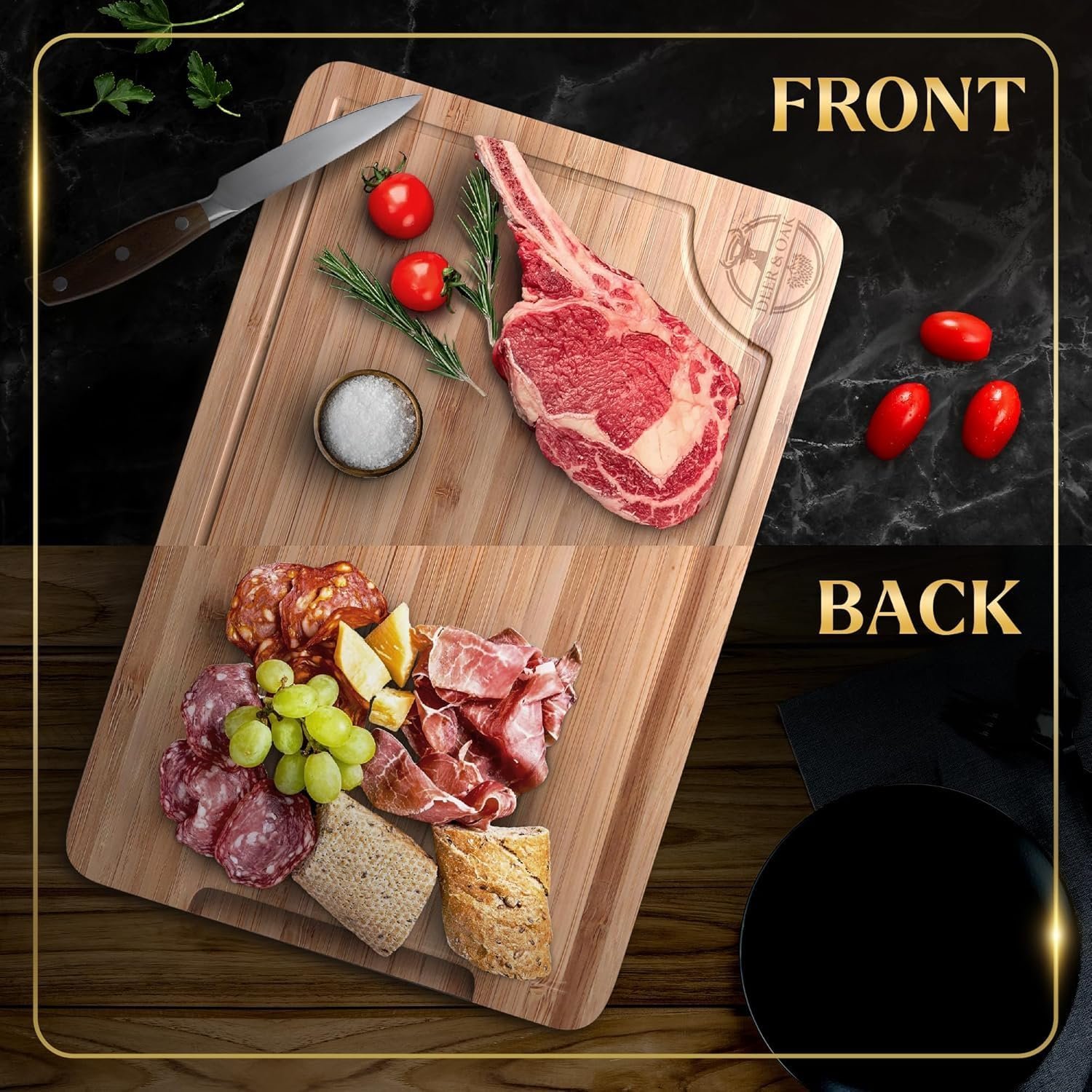 • ✔ DOUBLE AS SERVING TRAYS – FUNCTION MEETS STYLE: Designed with built-in side handles and warm natural bamboo finish, these boards make a seamless transition from food prep to elegant serving trays for bread, cheese, or charcuterie.