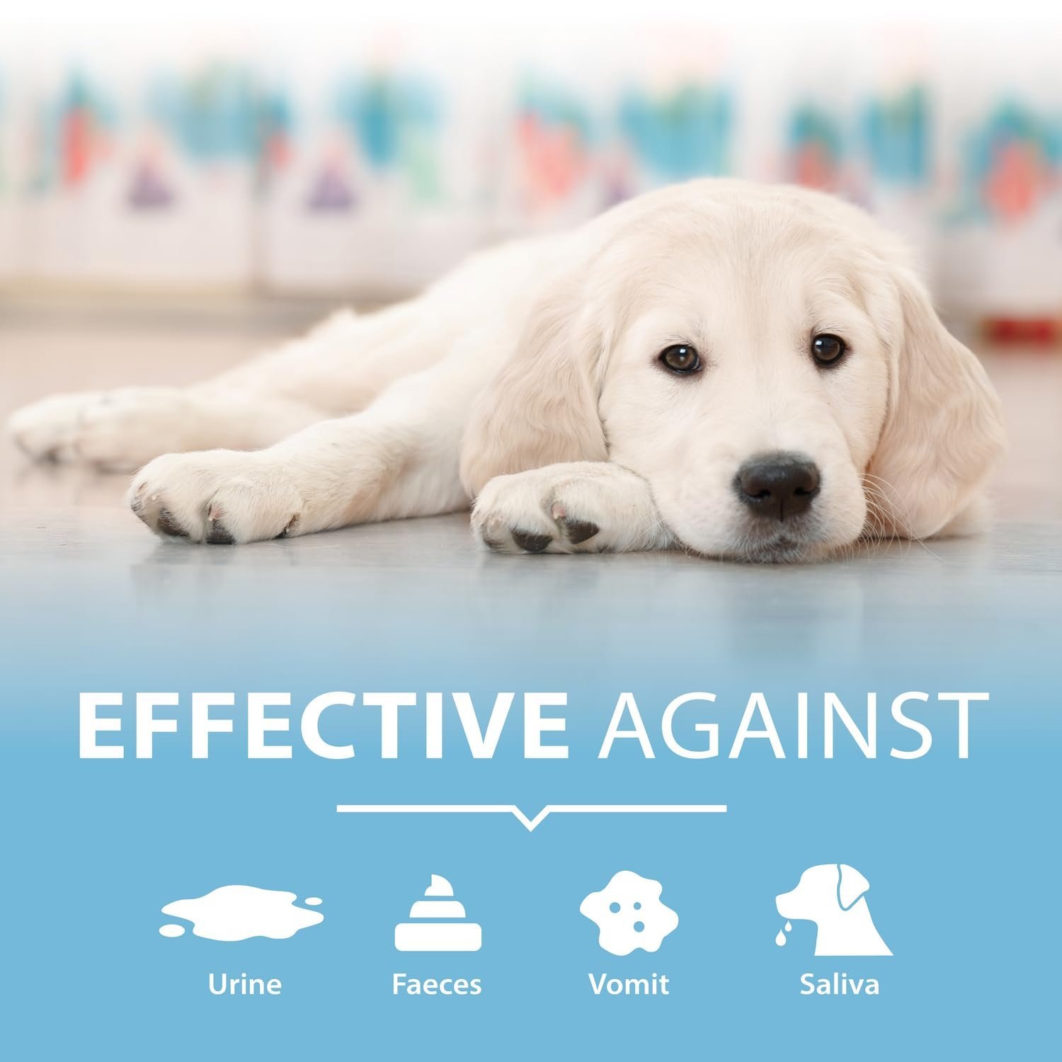 - Immediate & long-term effect – breaks down ammonia & uric acid within 24 h – stops re-marking – 48 h residual activity – safe for all dog life stages.