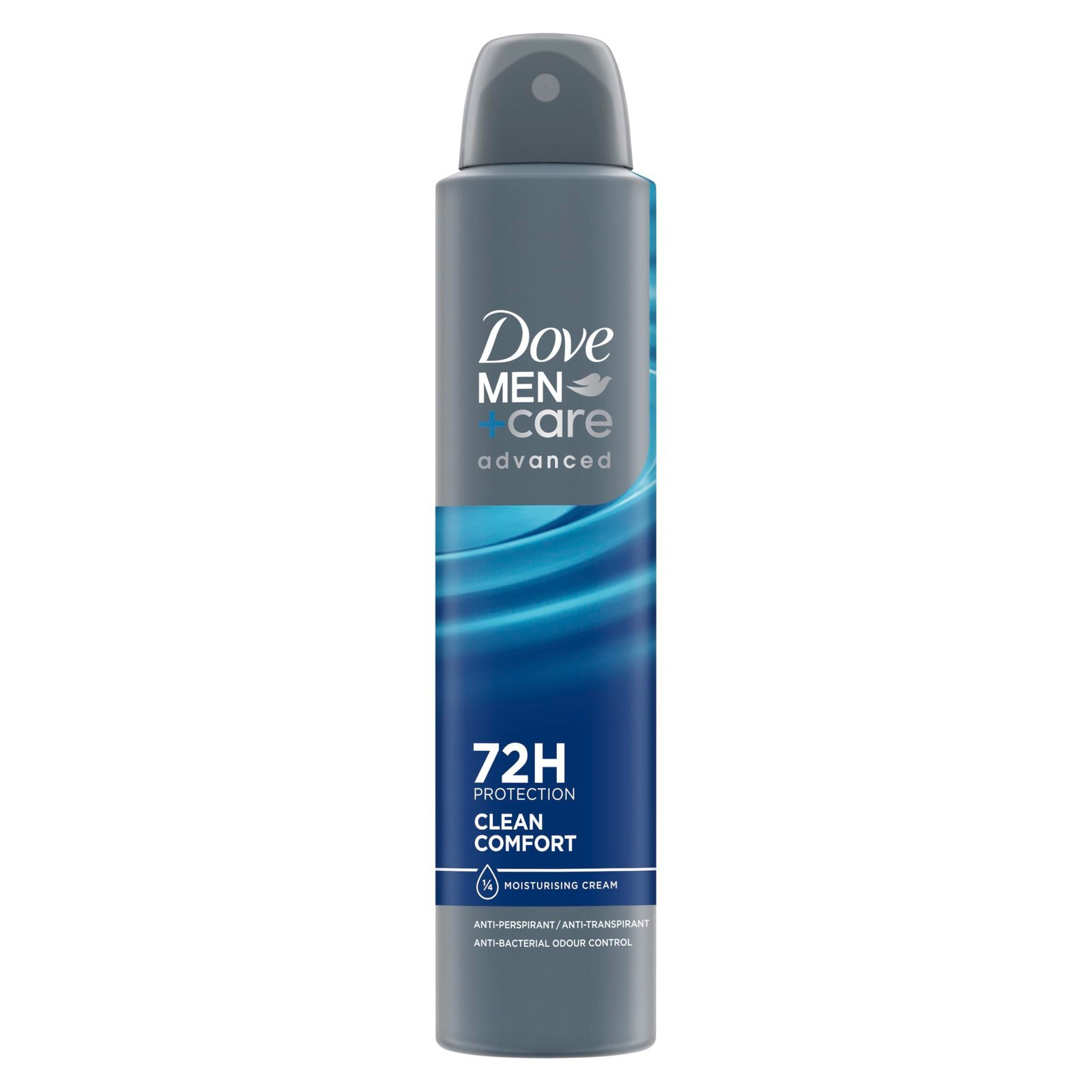 - Dove Men+Care Advanced Clean Comfort Anti-Perspirant Aerosol Deodorant provides the performance you need and superior comfort for your underarm skin – tough on sweat, not on skin