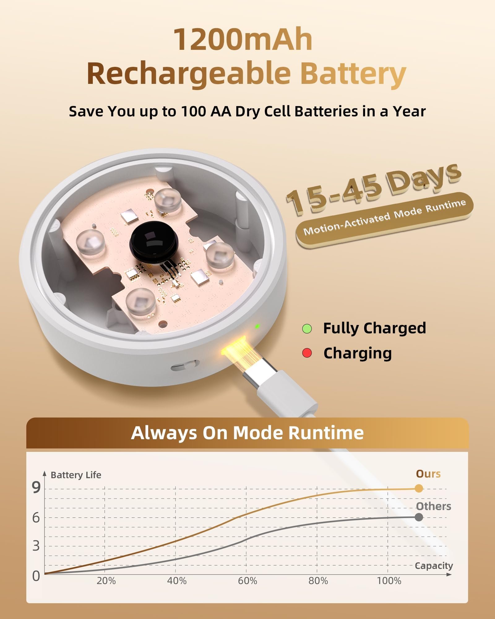 - 【Rechargeable & Energy- Saving】 The 1200mAh rechargeable battery can last for 30-60 days with an illumination frequency of 10-20 times daily for 20s each in AUTO mode, and it can stay illuminated for 11 hours as long as it’s on a timer. Super convenient and saving up to 100 AA dry cell batteries per year per light. (Note: Please charge before first use.)