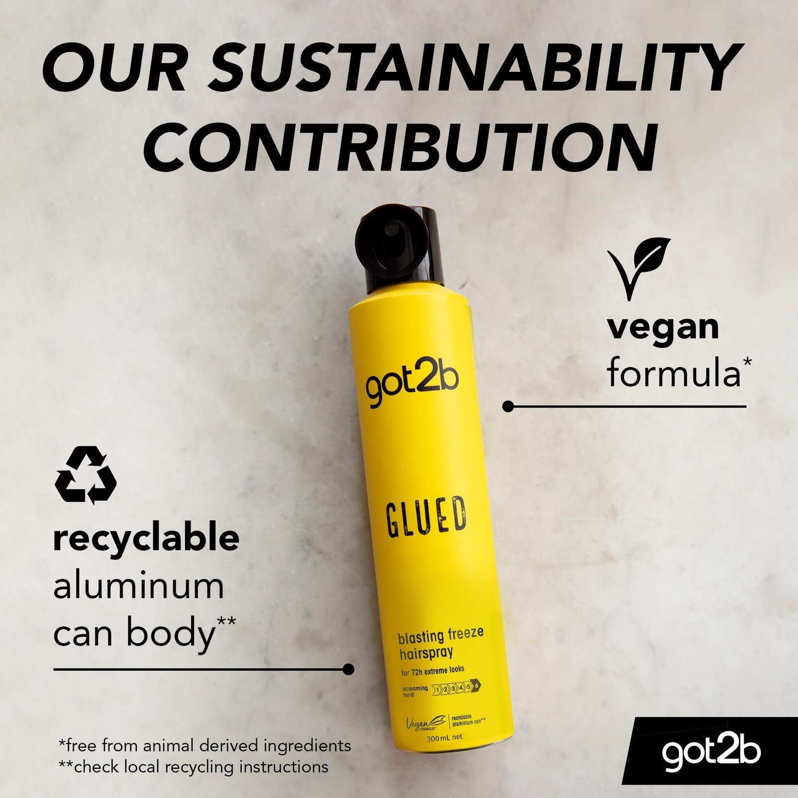 • Vegan* formula: The formula of this got2b glued spray is vegan*, meaning that the formula is free from animal-derived ingredients
