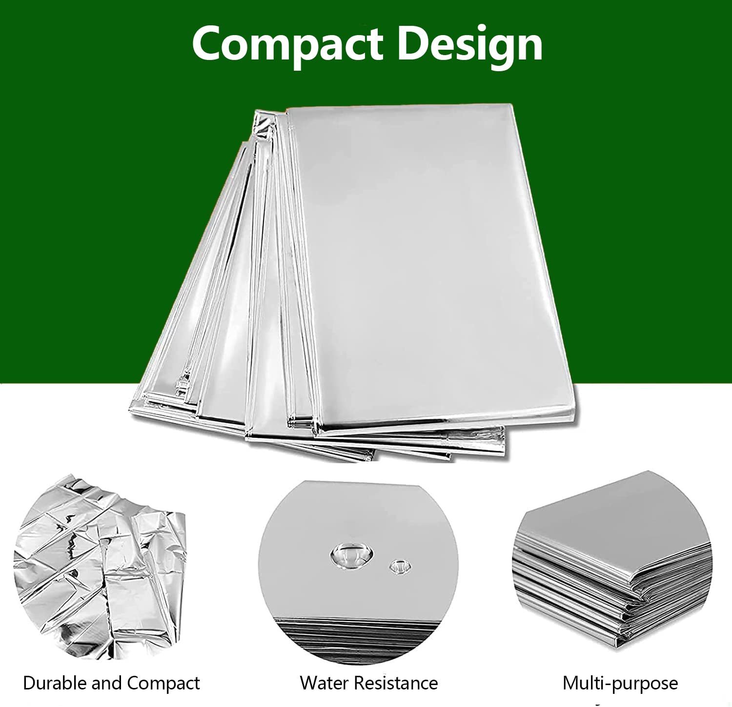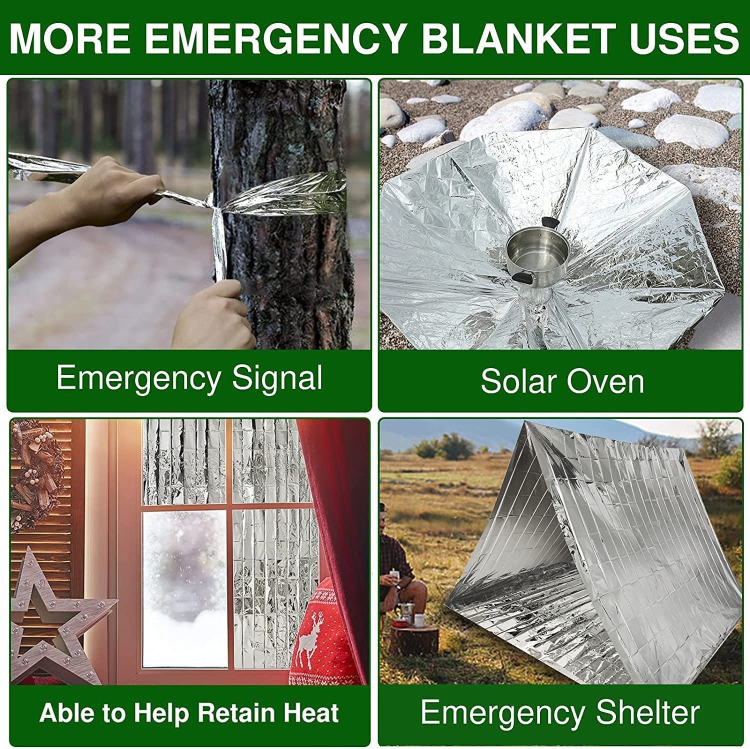 • 【Multipurpose】Emergency blanket can also be used as a backpack cover, rain poncho, emergency signal, shade cover, dust shield, sleeping bag liner, wind blocker, water collector, and many other creative applications.