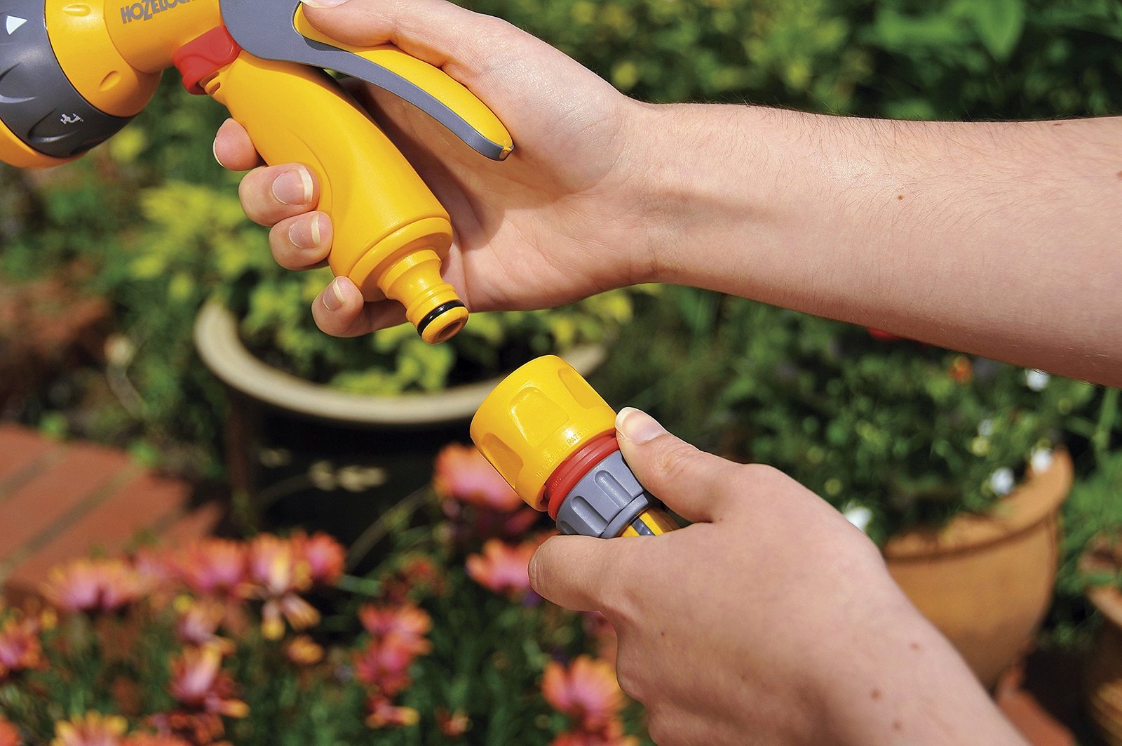 - Built to fit most male ended connectors, it can be securly attached or detached in seconds with Hozelock’s quick connect system