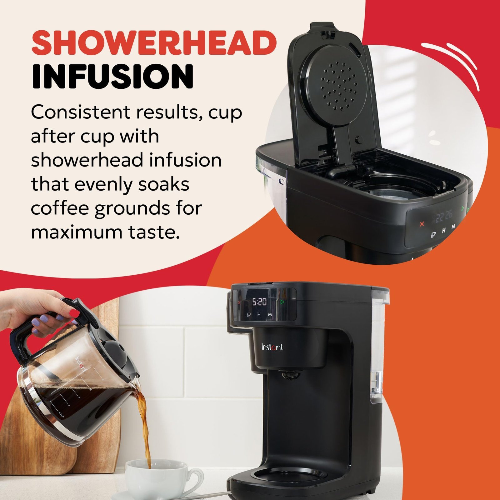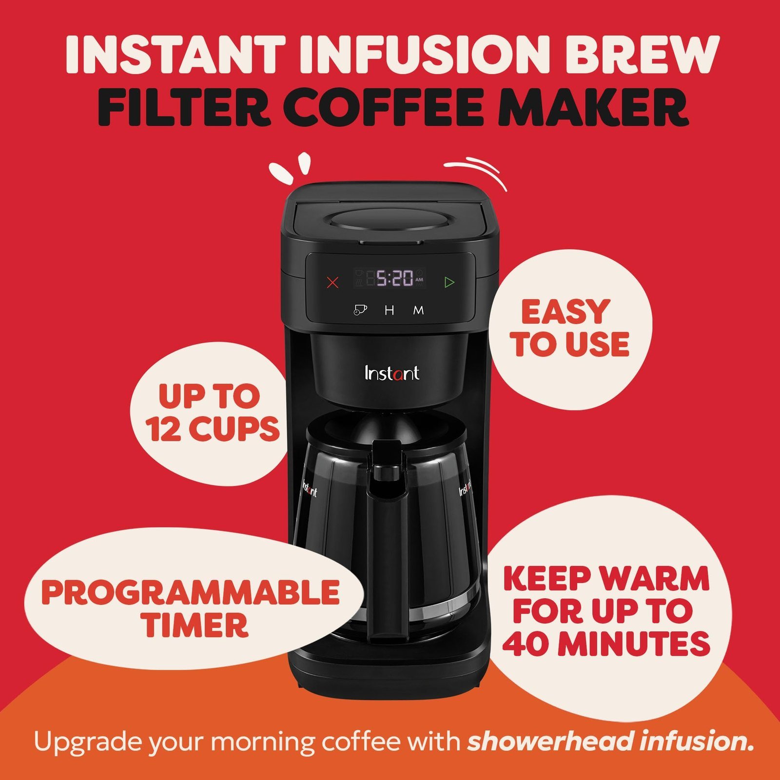 Instant Infusion Brew Automatic Filter Coffee Maker 24 Hour Programmable Coffee Machine, Glass Carafe, Digital Display – Keep Warm Function, 4-12 cup Customisable Brewing, Black