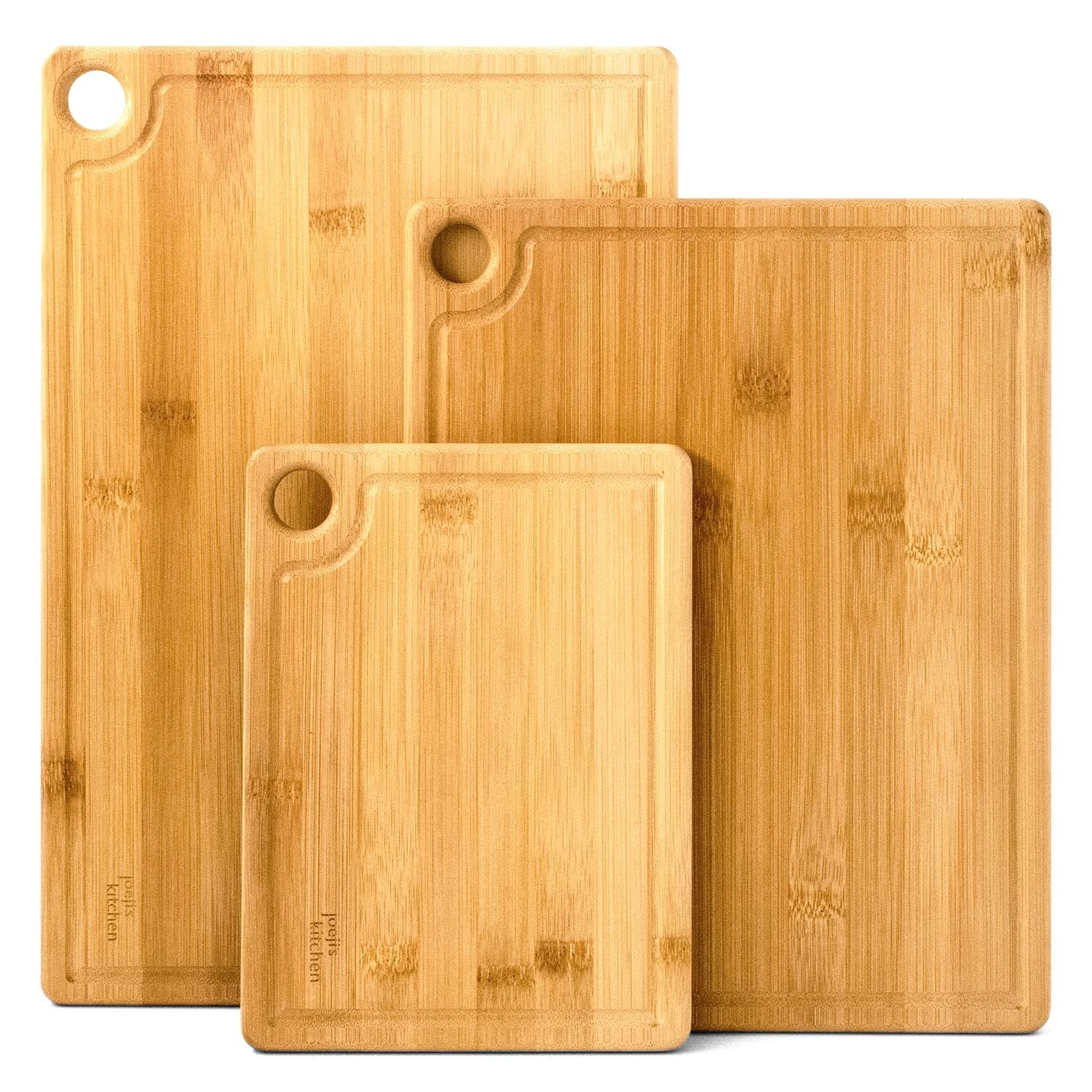Joeji’s Kitchen Set of 3 Chopping Board Heavy-Duty Bamboo Cutting Boards – 20×15 cm 28×22 cm & 33×22 cm Wooden Chopping Boards for Kitchens