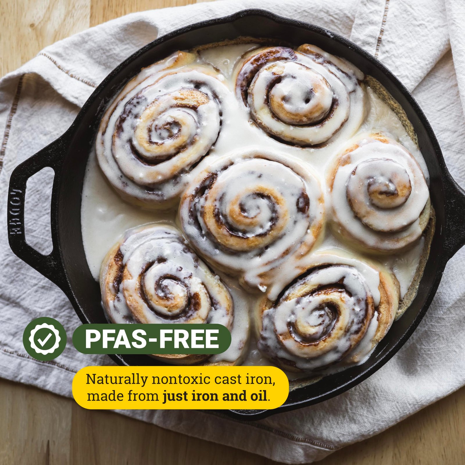 - NATURAL NON-STICK COATING – Pre-seasoned with 100% natural vegetable oil (is kosher and contains no animal fat) at Lodge’s foundry in South Pittsburg, Tennessee, USA. This produces an easy-release finish that will improve with regular cooking and if seasoned with additional oil after each use. Coating is non-toxic and contains zero harmful synthetic chemicals (unlike most non-stick pans).