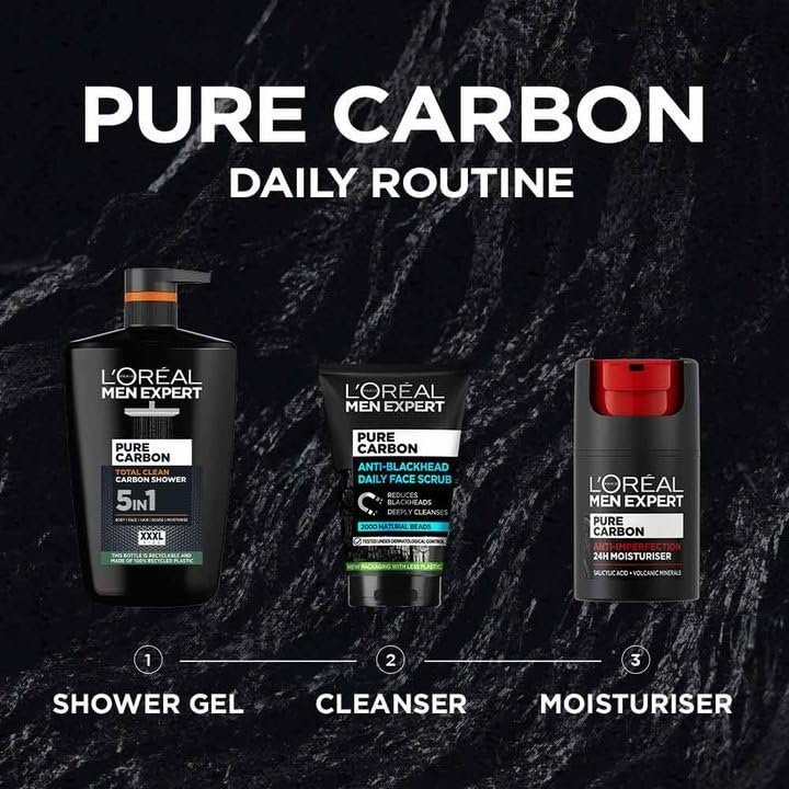 L’Oréal Men Expert, Pure Carbon, 5-in-1 XXL Shower Gel, A Total Action Body, Face, Hair Wash, Shave and Moisturiser Powered By Carbon, Total 5-in-1 Action, Large 1L Pump