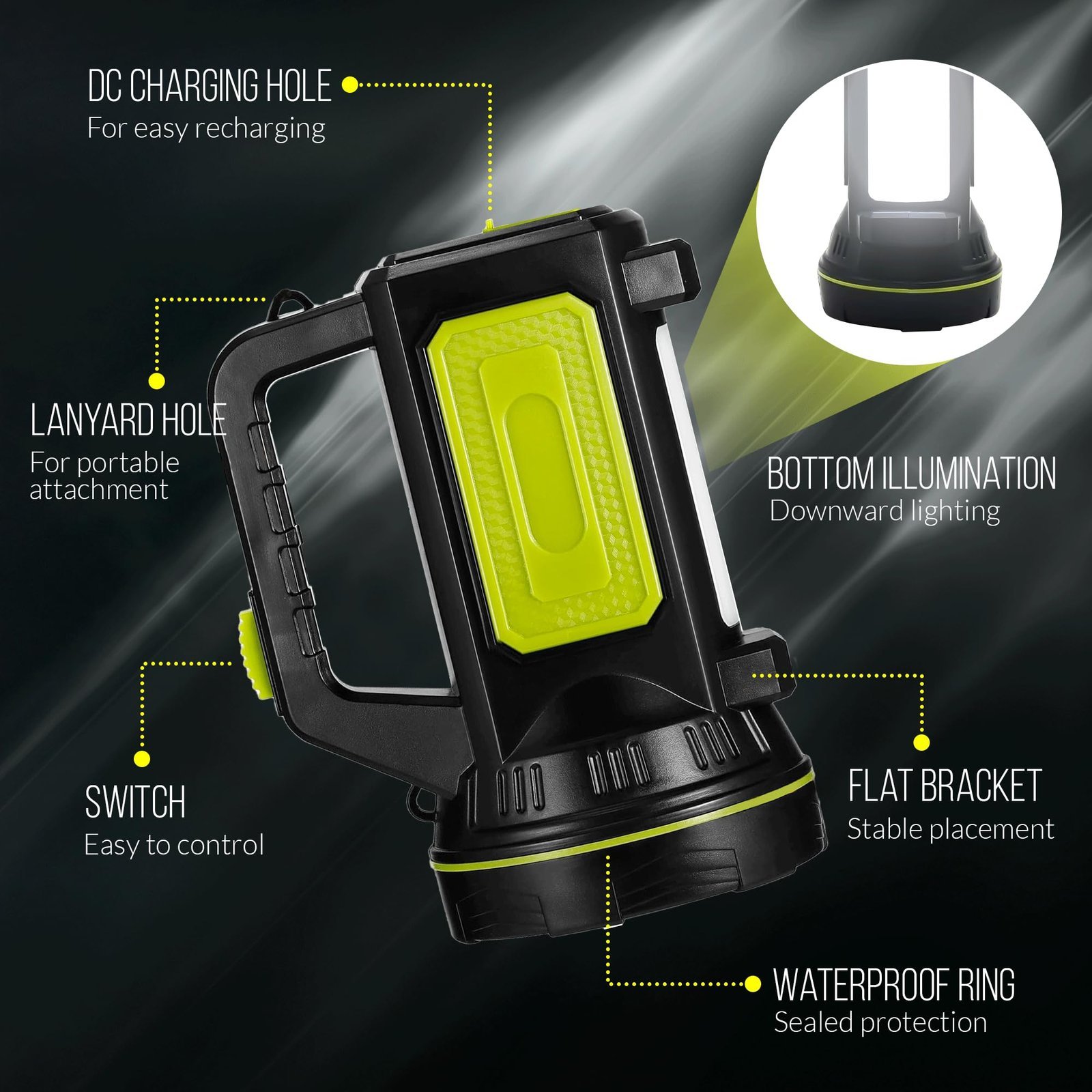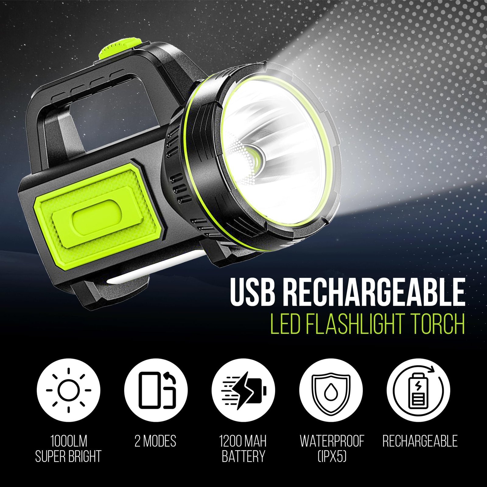 • HIGH-POWERED DUAL LIGHTING MODES: Switch effortlessly between the powerful front spotlight and the wide-area side lantern mode. This versatile torch light delivers 1000LM of illumination, offering an essential hand torch for night exploration, work, camping, and every scenario where you need a quick-access light.