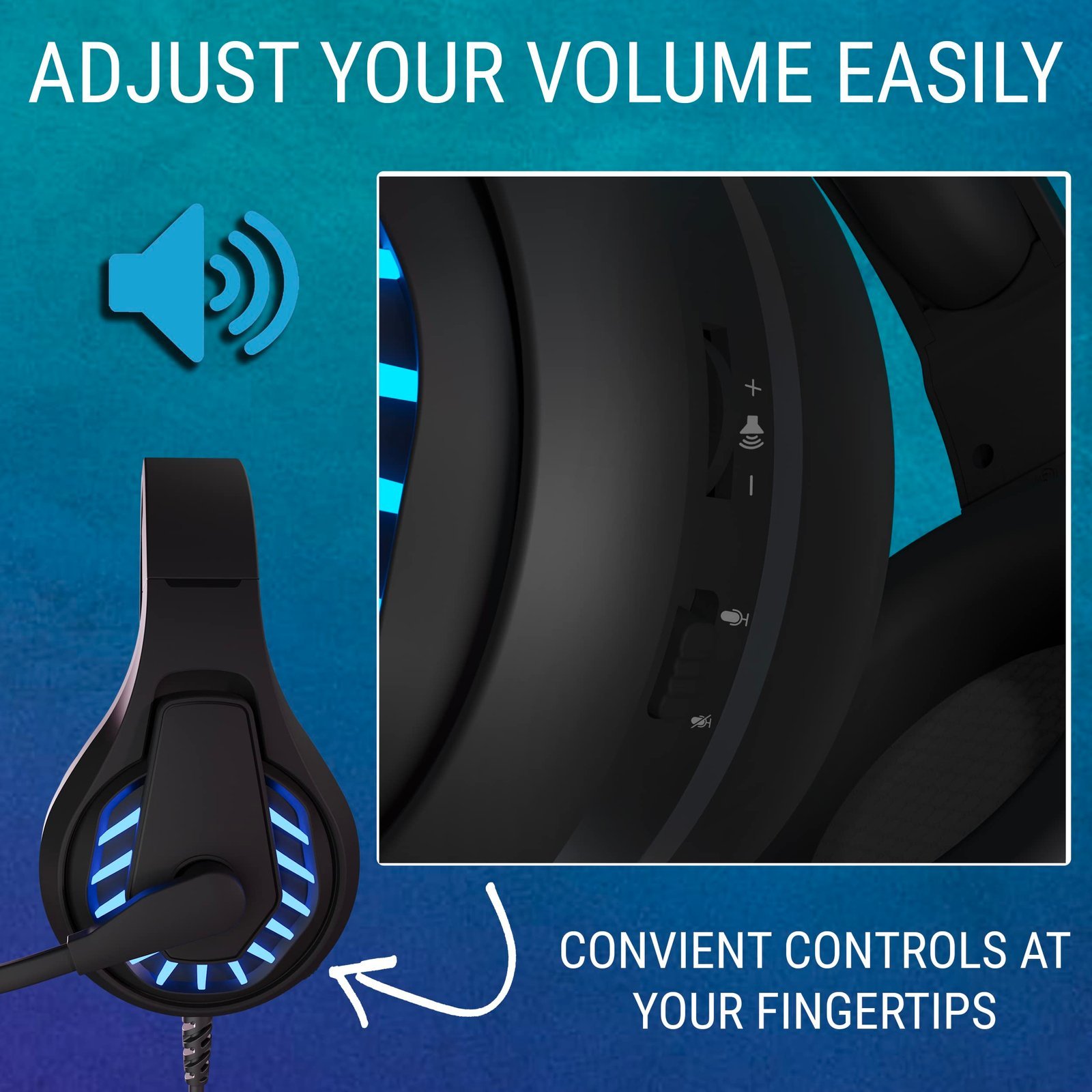 - [SUPERIOR AUDIO QUALITY]: Large 50-millimetre Neodymium drivers in this gaming headset deliver a more immersive, cinematic gaming experience. The stereo audio is high quality and crisp with an impressive range. Subtle in-game sounds like footsteps are easy to hear giving you get that edge while you’re gaming and the deep bass of loud explosions comes through clearly with no distortion. Volume controls are located on the earcup so that you can always find them easily.