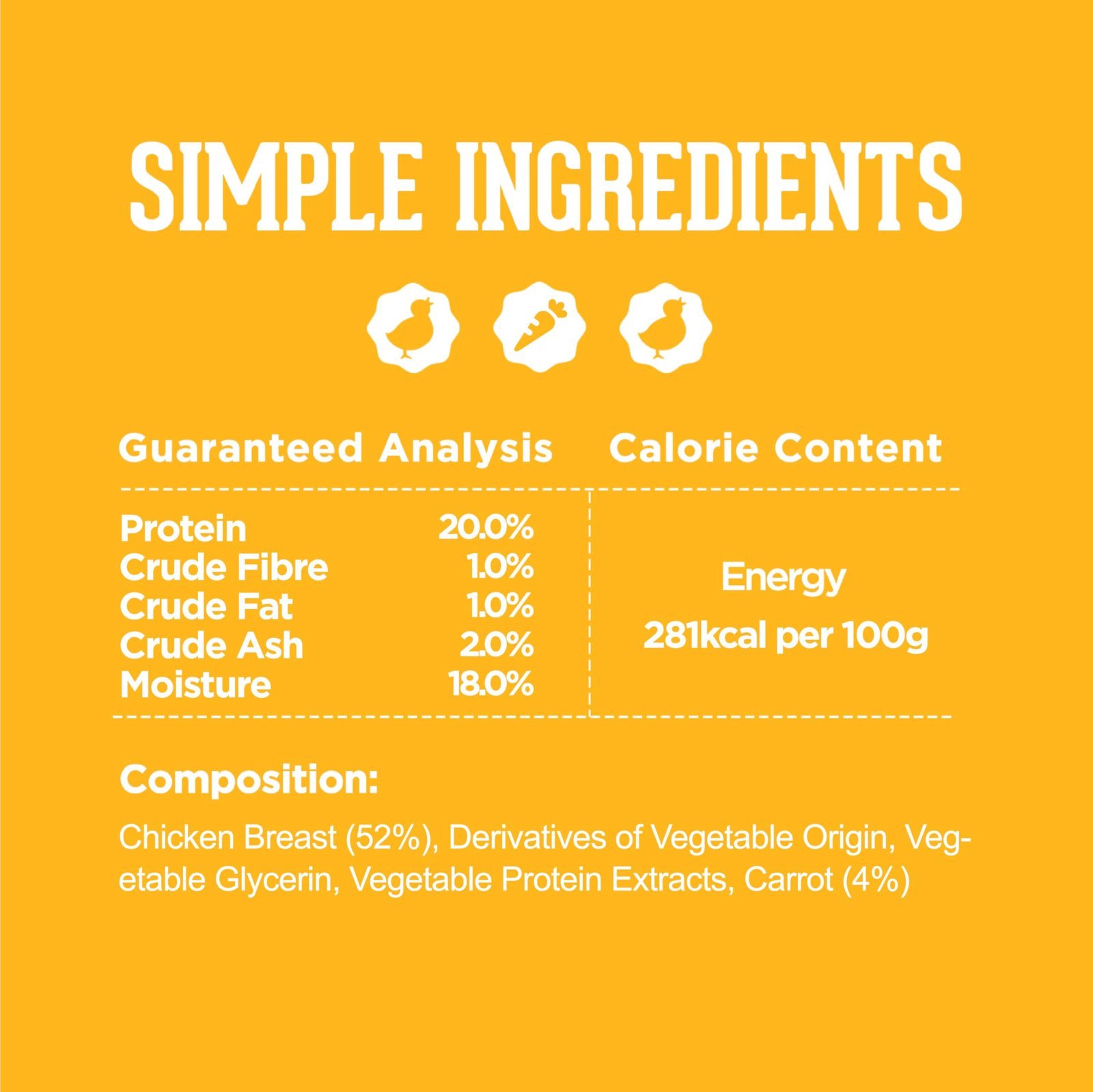 - Pure Natural Meat with Carrot: Our chicken dog treats are made of pure natural human-grade chicken breast meat blended with carrot, which contains a rich of calcium and other nutrients
