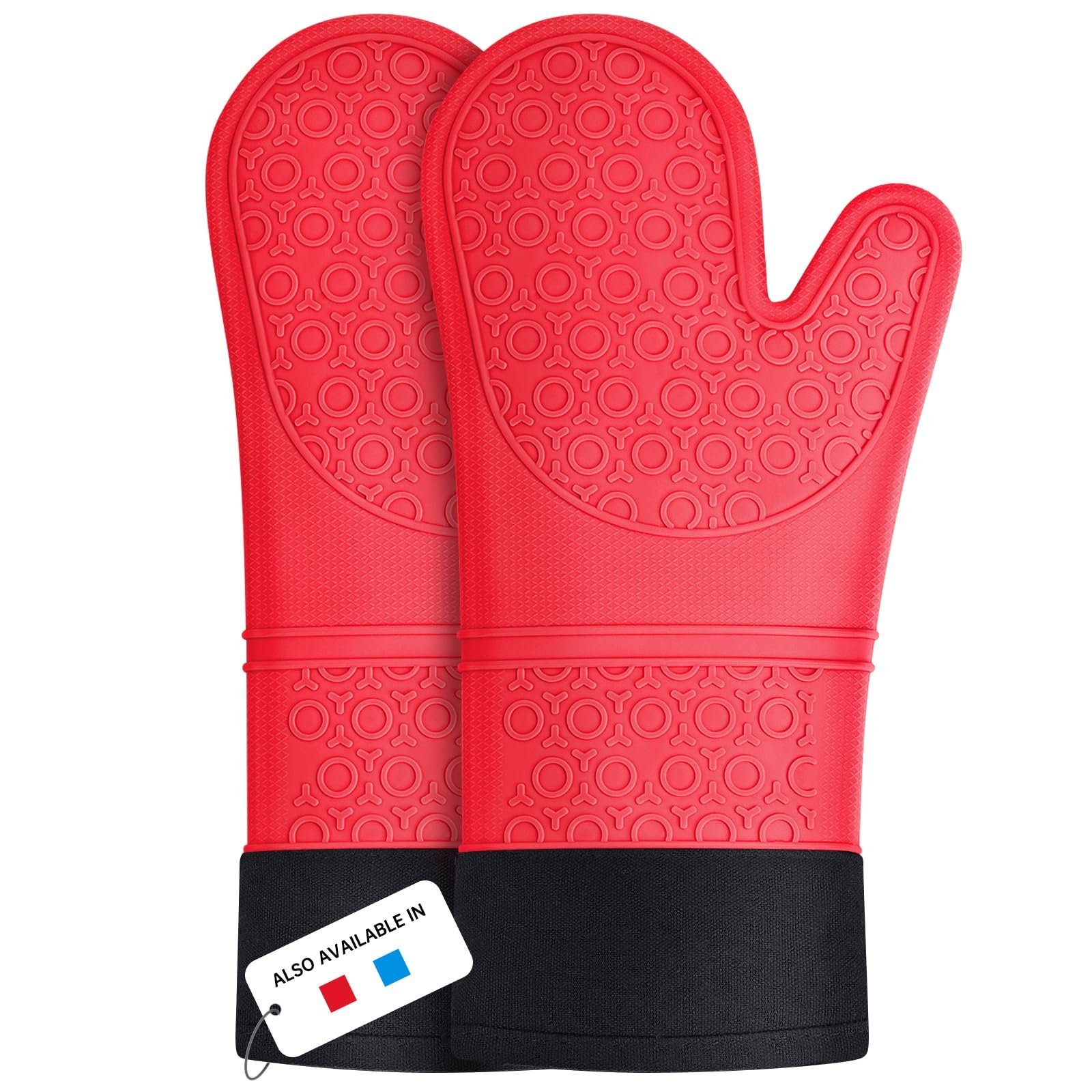 Silicone Oven Gloves, Heat Resistant Silicone Oven Mitts, Extra Long Non-Slip Gloves for Kitchen Heatproof 446 F, Red, 1 Pair