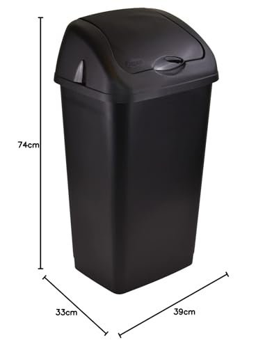 Details: A large sized bin for home or kitchen waste. It has a removable swing lid to cover up the rubbish and is easy to remove. The lid also acts as a barrier to keep insects out and odours in. The bin has a Matt plastic finish. It is approximately (L x W x H) 39 x 33 x 74cm in size.