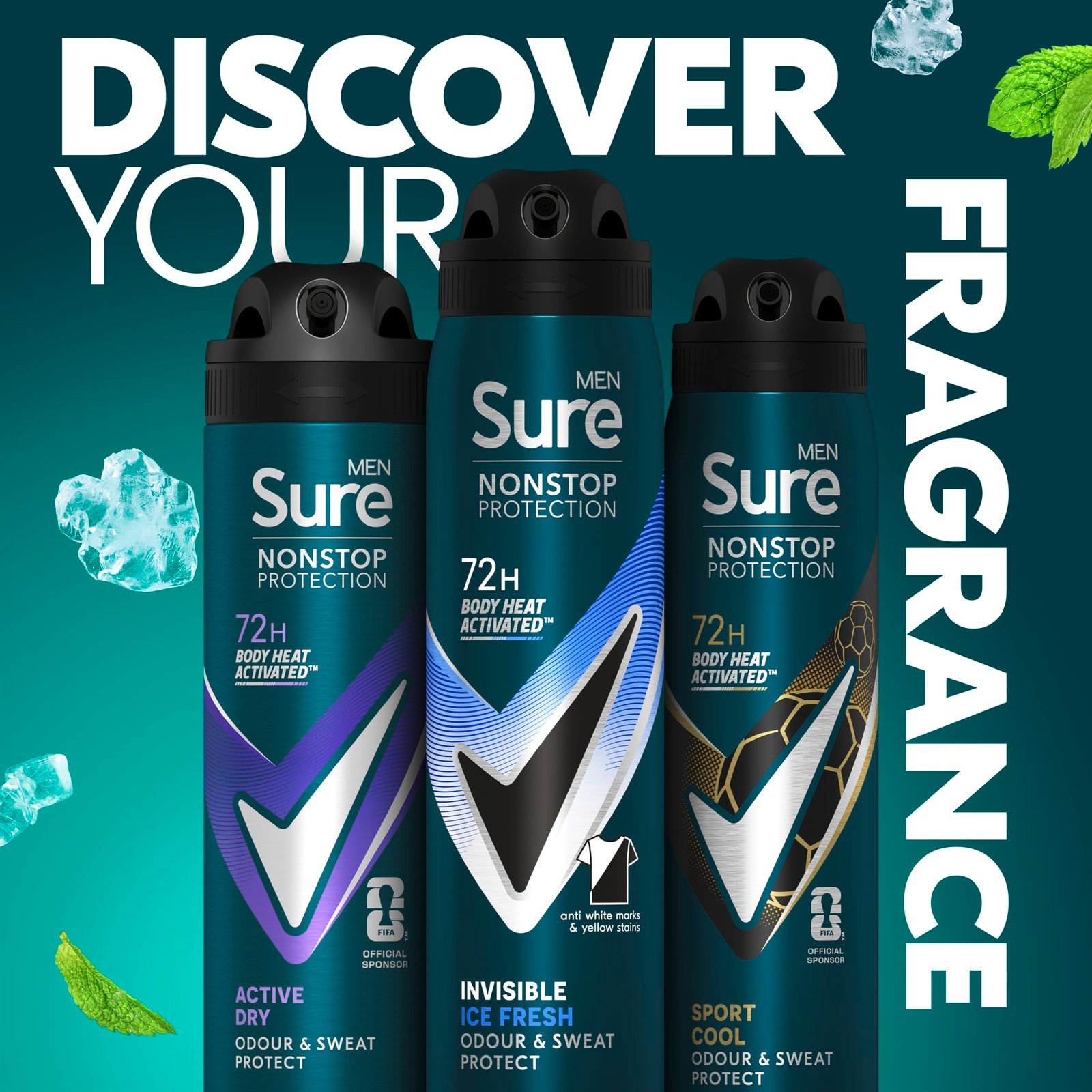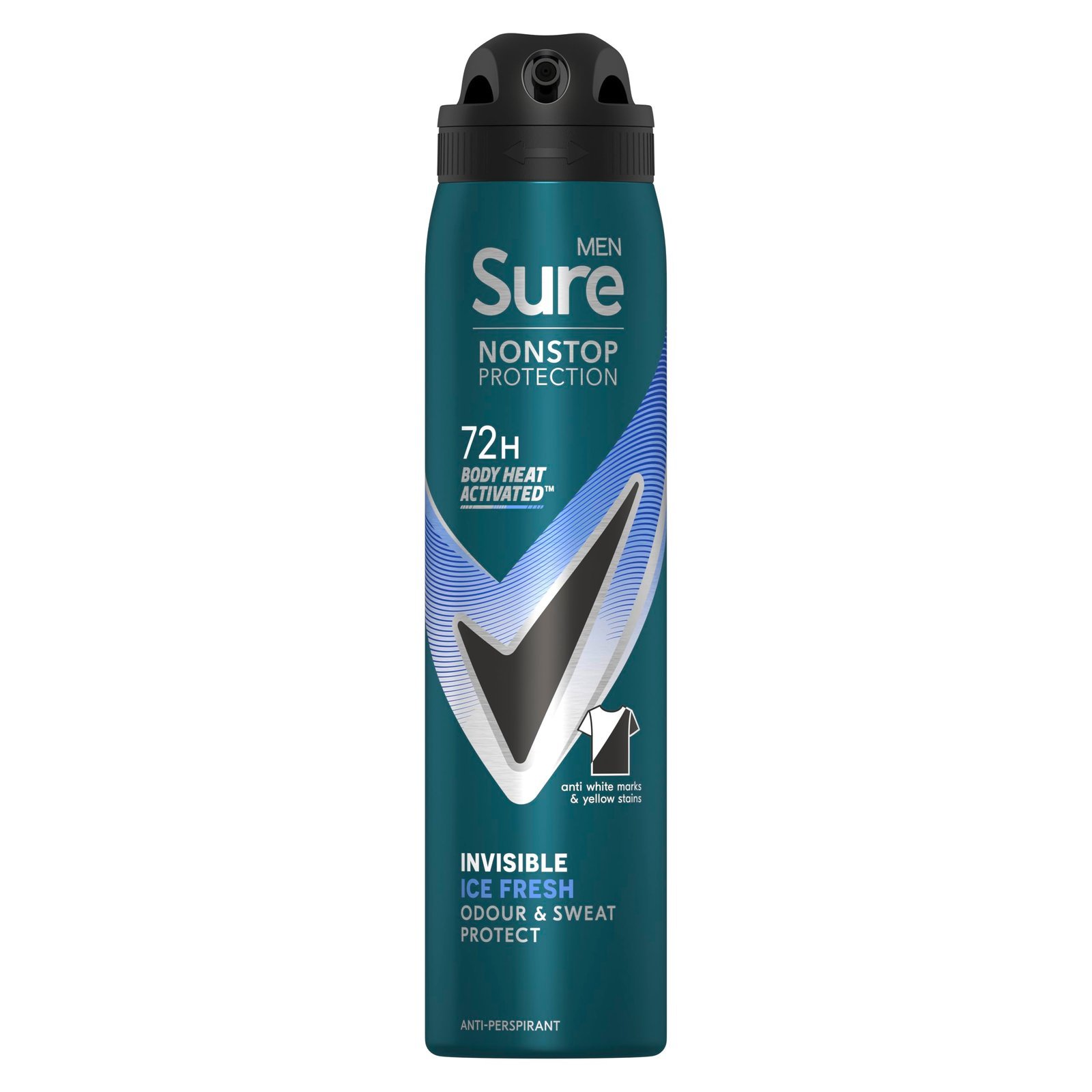 - Sure Men Nonstop Protection Invisible Ice Fresh Anti-Perspirant Aerosol Deodorant provides 72-hour sweat and odour protection without leaving white marks or yellow stains on clothes