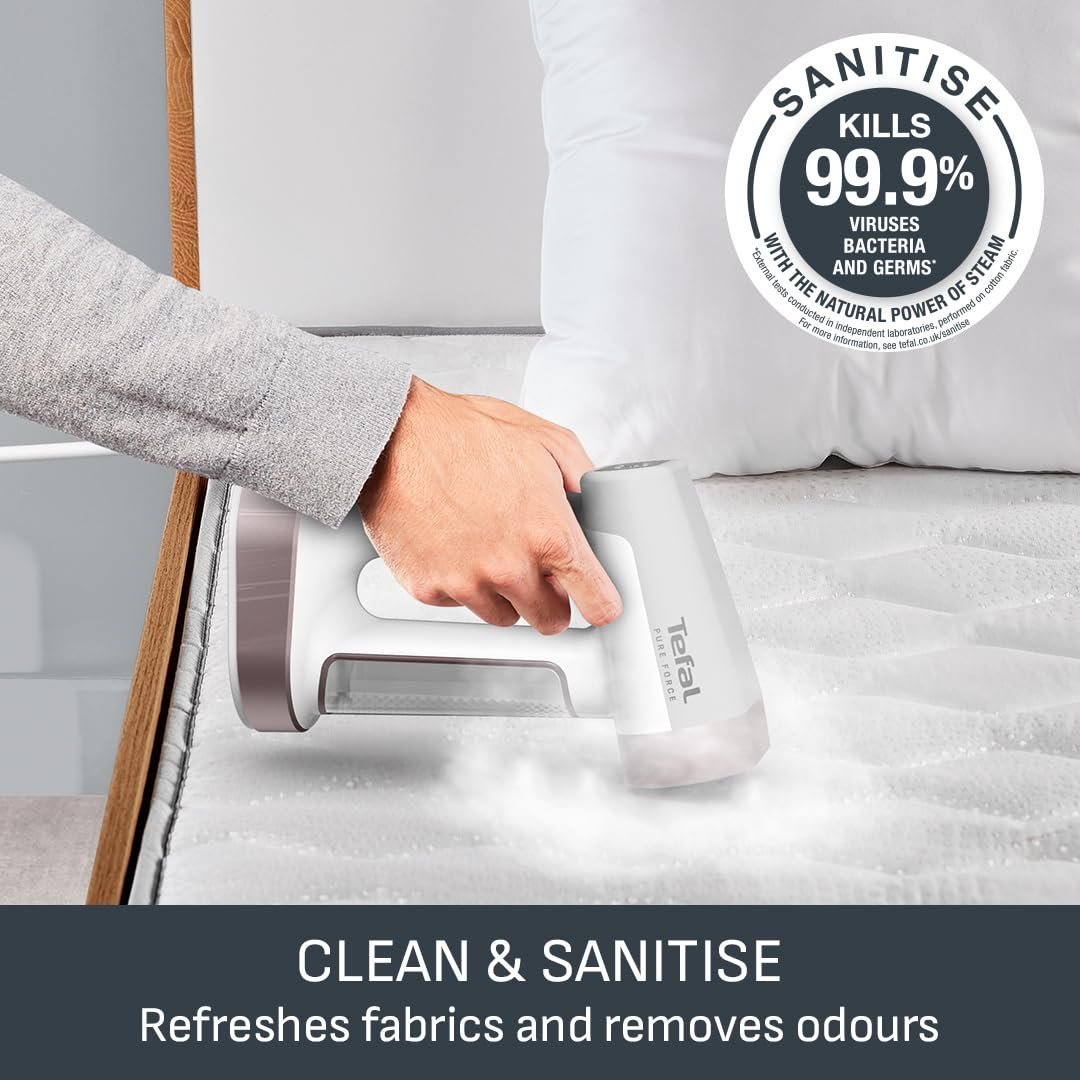 - CLEANING & SANITATION: this steamer not only refreshes fabrics but also sanitises them, killing up to 99.99% of viruses, bacteria, and germs. It also effectively removes odours, leaving your clothes both fresh and hygienic.
