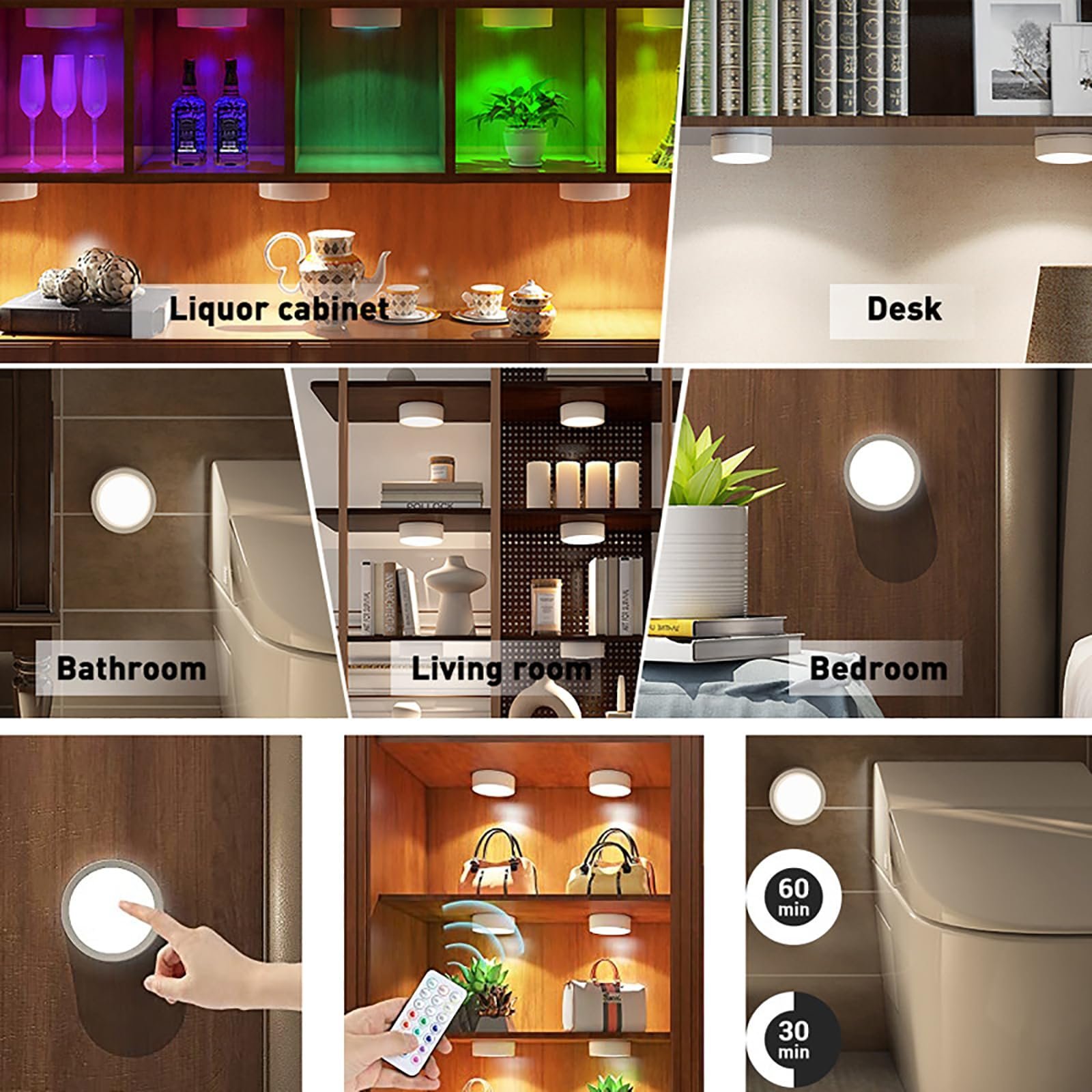 - 【3 PACK LED PUCK LIGHTS】- The upgraded puck lights will radically change the way you look at kitchen and living and bedroom closet lighting. We add an additional led bead to the 13 color schemes (warm white and 12 RGB color change). Make the lighting more bright and stable.