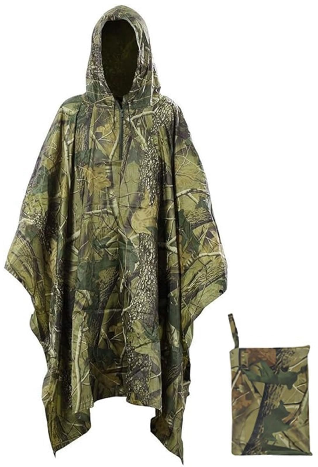 - [Large size Raincoat] – The Rain Poncho for outdoor size is 55″ Lx 40 ” W(140x 100CM ), Raincoat area is big enough not only in the rain to protect you from moisture, you can also cover the backpack, not wet. Color: camouflage,color is close to forest, good for hiding when hiking,hunting,camping and other outside activities.