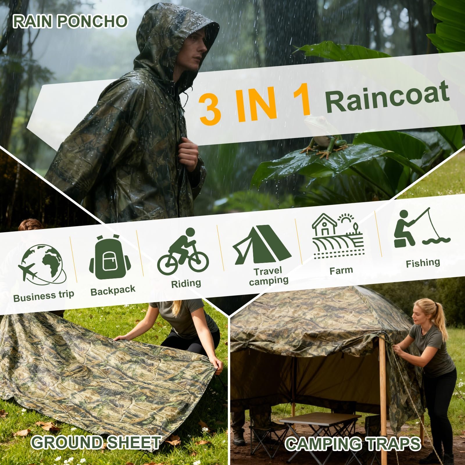 - [3-IN-1 Raincoat] – Infreecs multifunctional rain poncho for outdoor activities, as a poncho, tent, blanket or awning, suitable for hikes, picnics, fishing and other outdoor activities. The camouflage color is very suitable for outdoor activities.